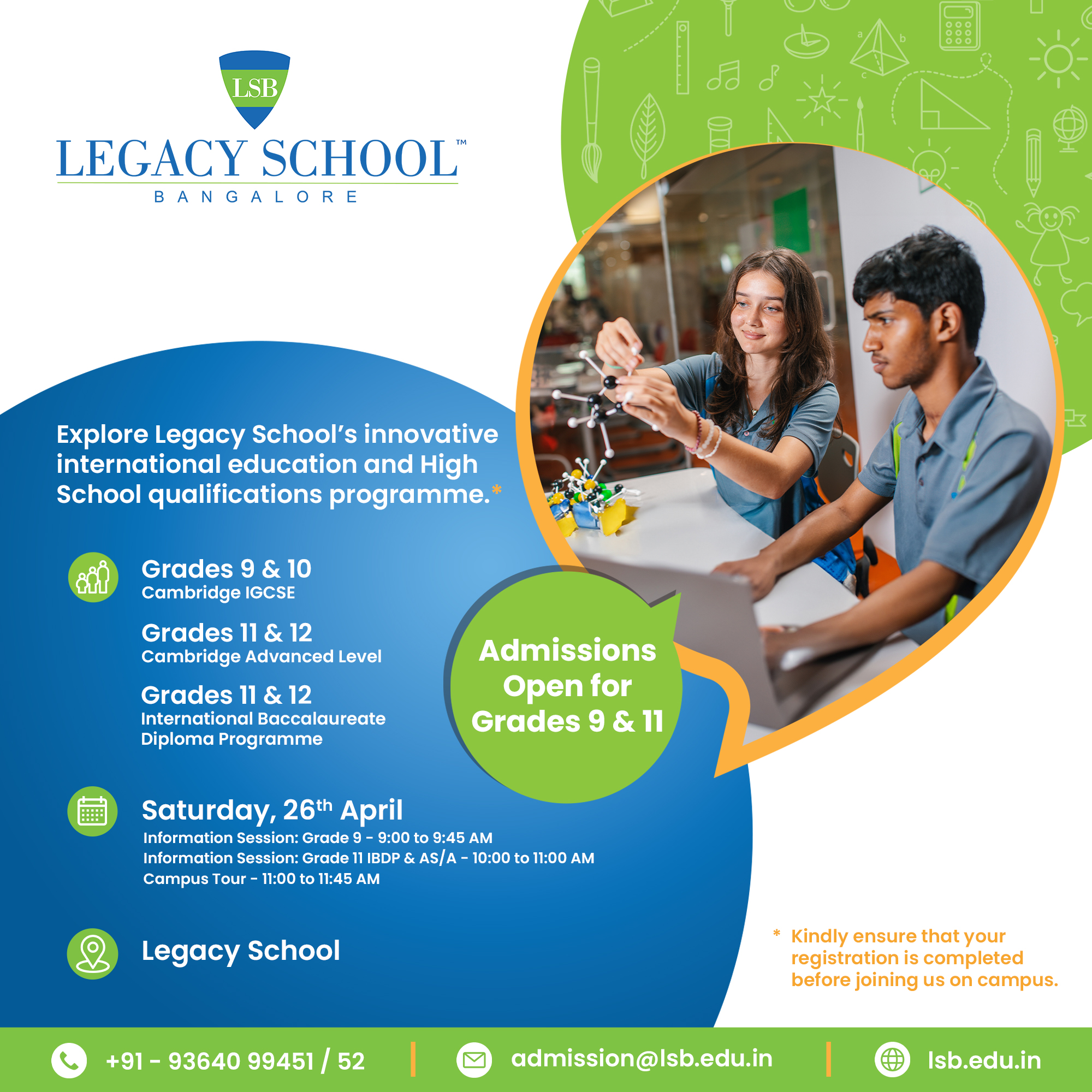 CIE is a part of Cambridge Assessment, a department of the University of Cambridge (UK). CIE qualifications are recognized by the world’s best universities and employers, giving students a wide range of options in their education and career. CIE qualifications prepare school students for life, helping them develop an informed curiosity and a lasting passion for learning. These programs and qualifications set the global standard for international education. They are created by subject experts, rooted in academic rigour and reflect the latest educational research. They provide a strong platform for learners and have a proven reputation for being an excellent preparation for students progressing to university. Legacy School invites prospective applicants to indicate their intent to be considered for admission by submitting the inquiry form for the upcoming admission entry session for the academic years 2025-26.